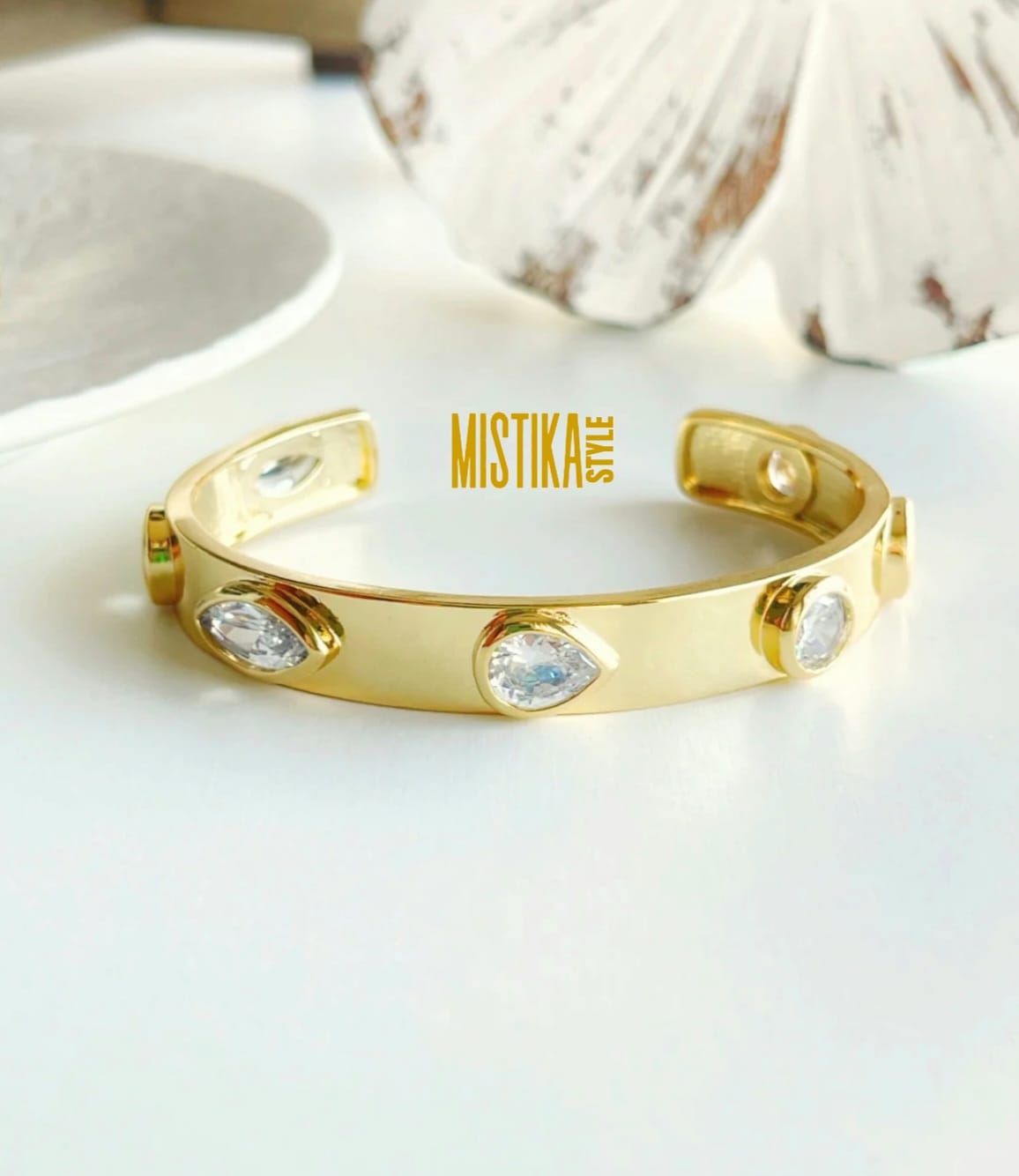 Gold bracelet with geometric glitter details, adjustable in gold-plated metal alloy
