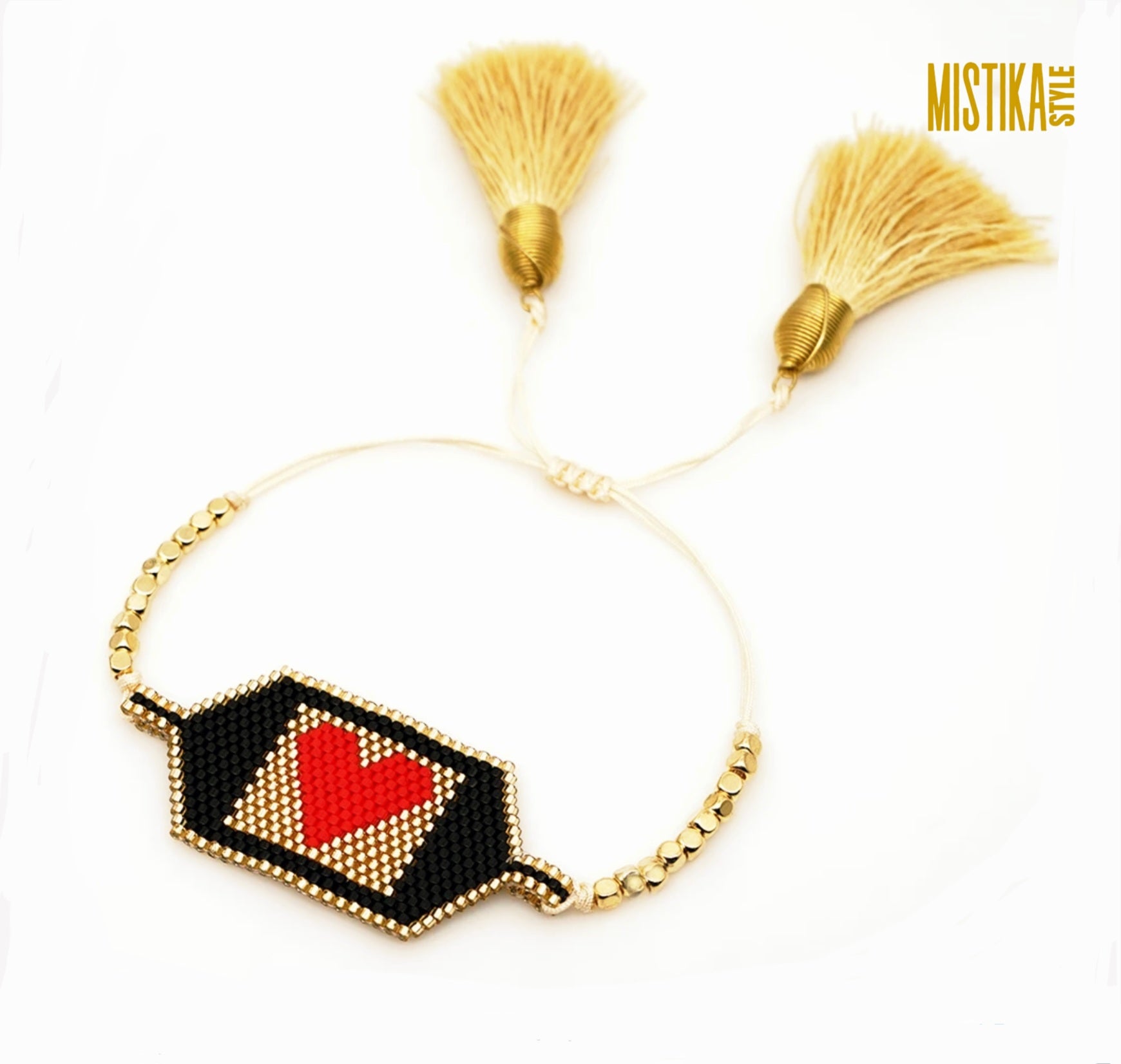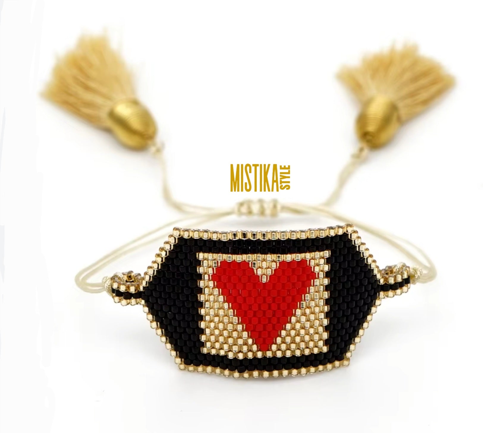 Delicate red heart bracelet made with the Miyuki technique, a fine interlacing of brightly colored resin beads durable and super delicate